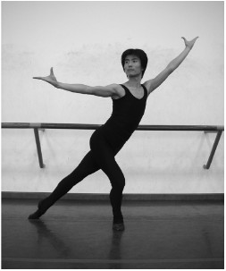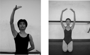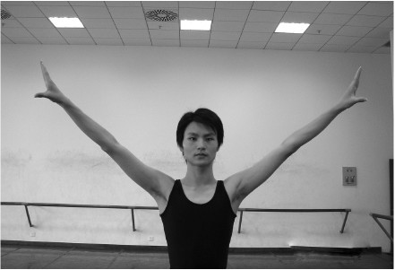 女:以兰花掌形将手臂成圆弧形抬至身旁,位置略低于肩部,是为单山膀。
