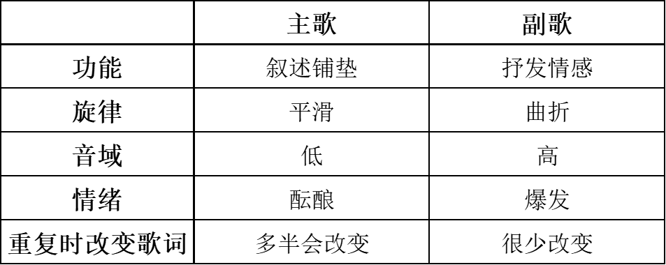 绝大多数流行歌曲都遵循“主副歌结构”、在一首歌曲里包含两种主要的段落: