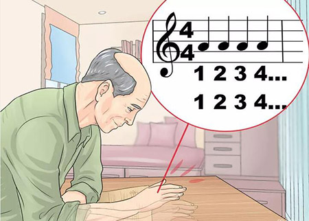 第2步,用手打拍子:在从头开始聆听这首乐曲的时候,用一只手拍桌子、或拍另一只手、或拍大腿,并数鼓点12345678或咚咔咚咔等,一定要数出来。